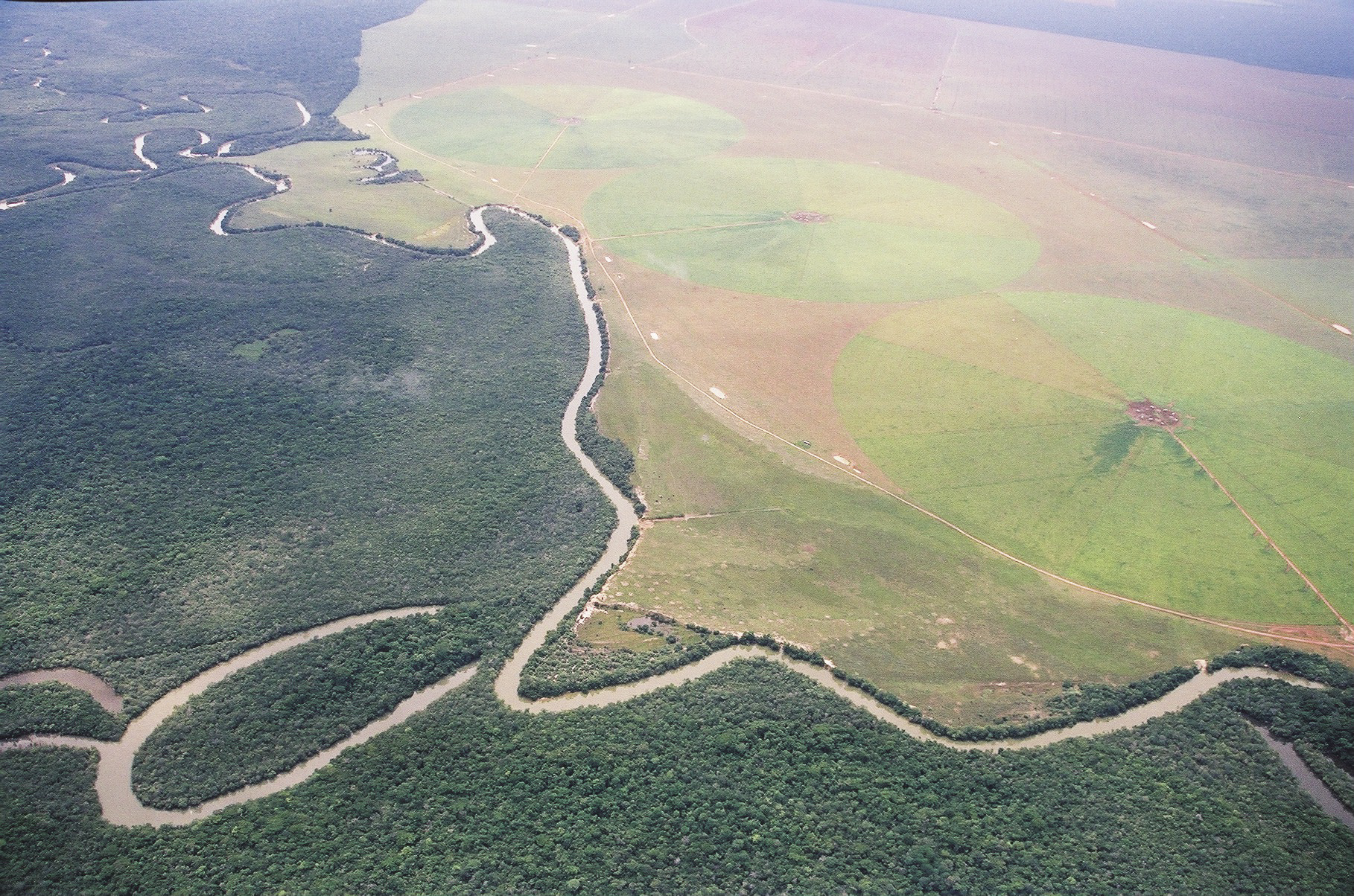 Pivô central em área agrÃcola da fazenda Roncador, na divisa com o rio Suiá-Miçu, Querência, Mato Grosso