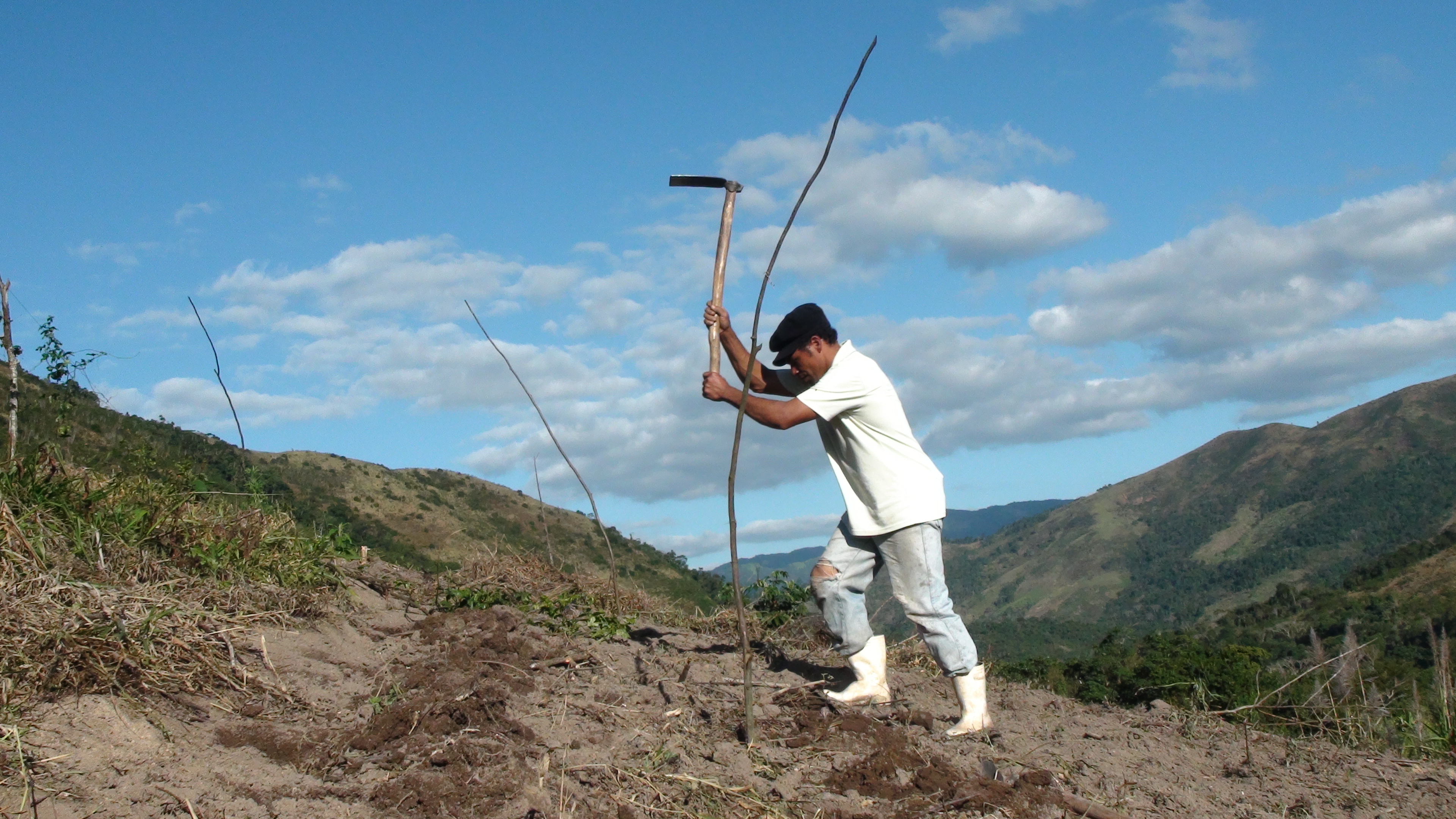 Osvaldo dos Santos plantando mandioca no Quilombo Porto Velho, em Iporanga/SP.