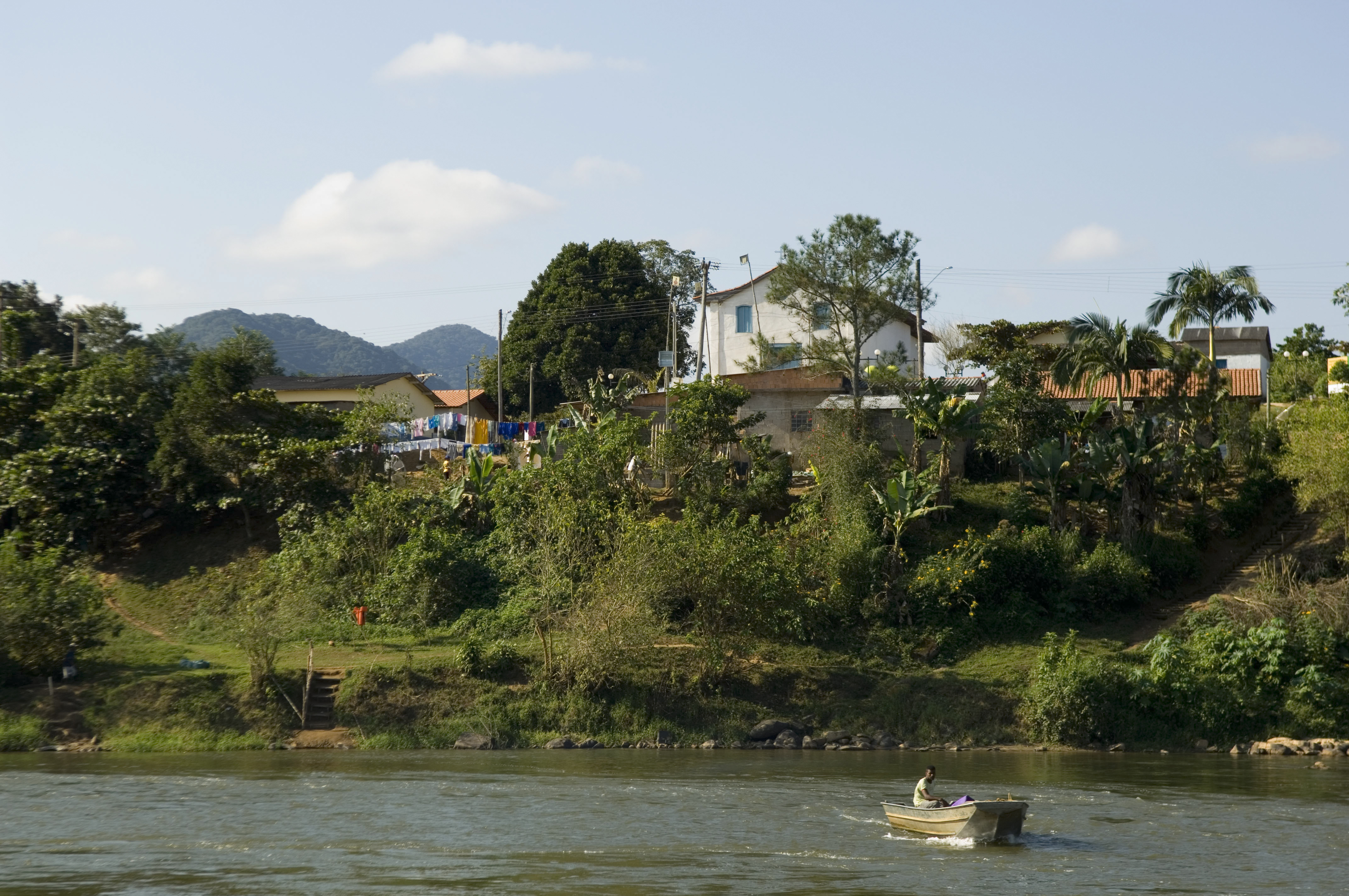 Barco faz a travessia do quilombo de Ivaporunduva para a estrada, Eldorado, Vale do Ribeira, São Paulo