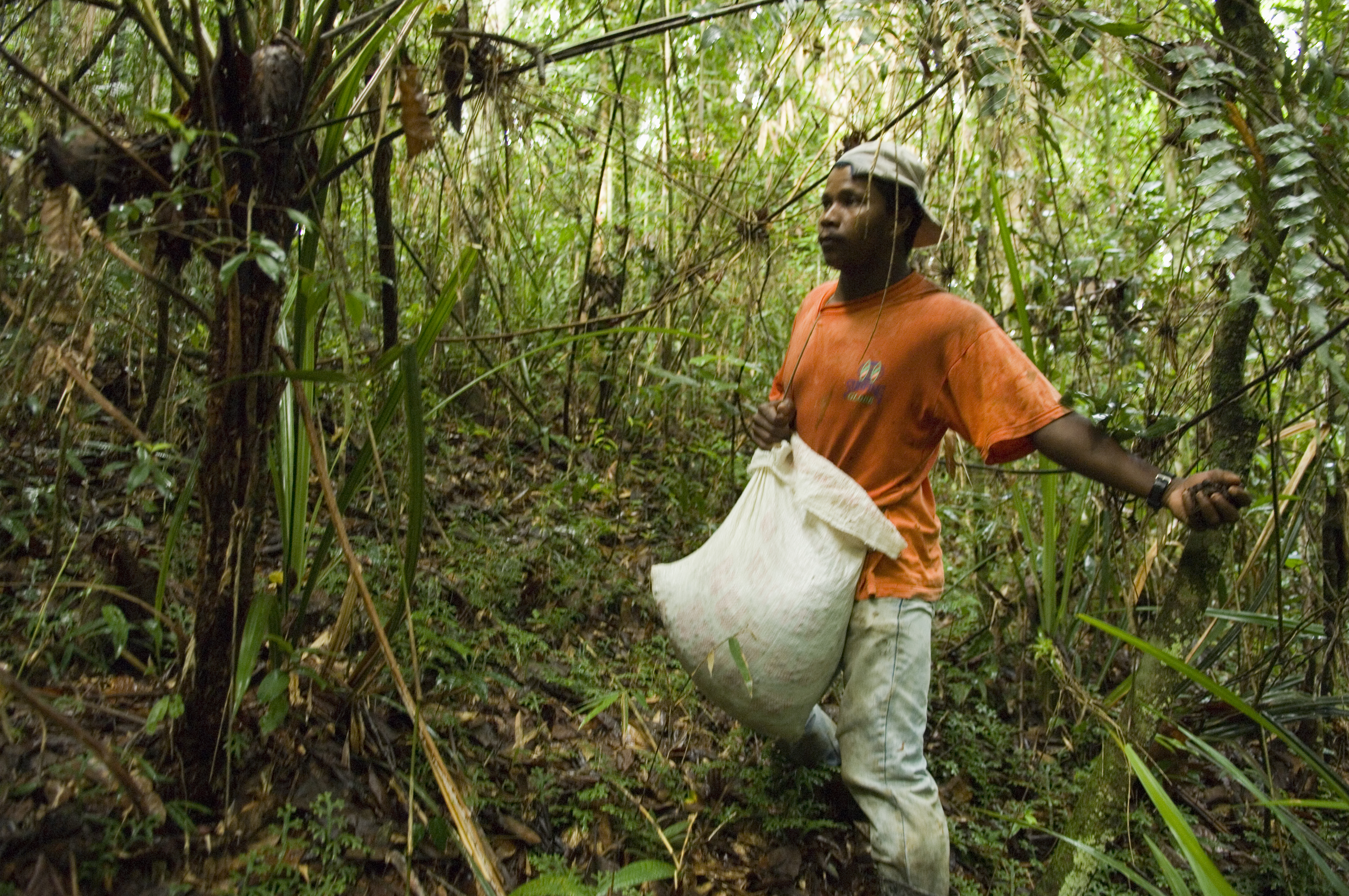 Mutirão para repovoamento do palmiteiro juçara no quilombo Galvão.