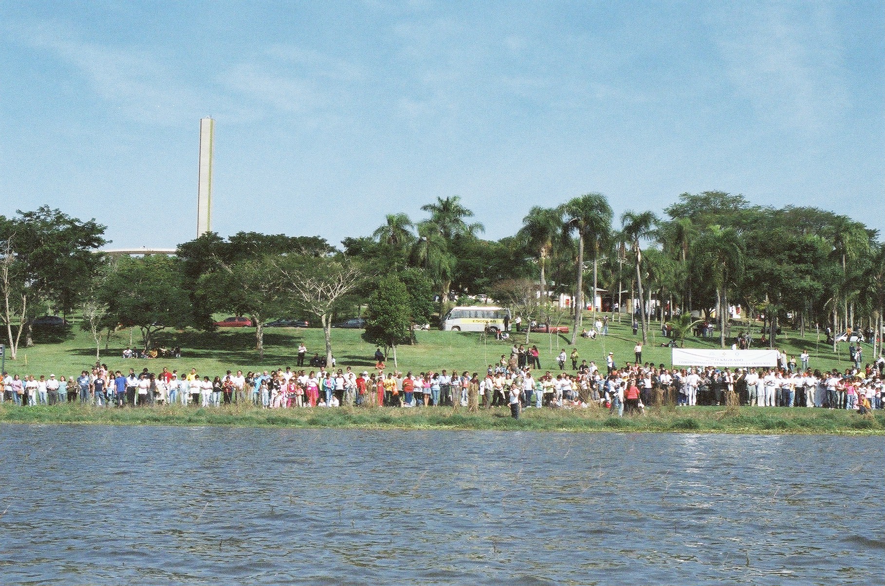 Mais de quatro mil pessoas se reuniram ao redor da represa Guarapiranga para abraçá-la e pedir por sua preservação e recuperação.