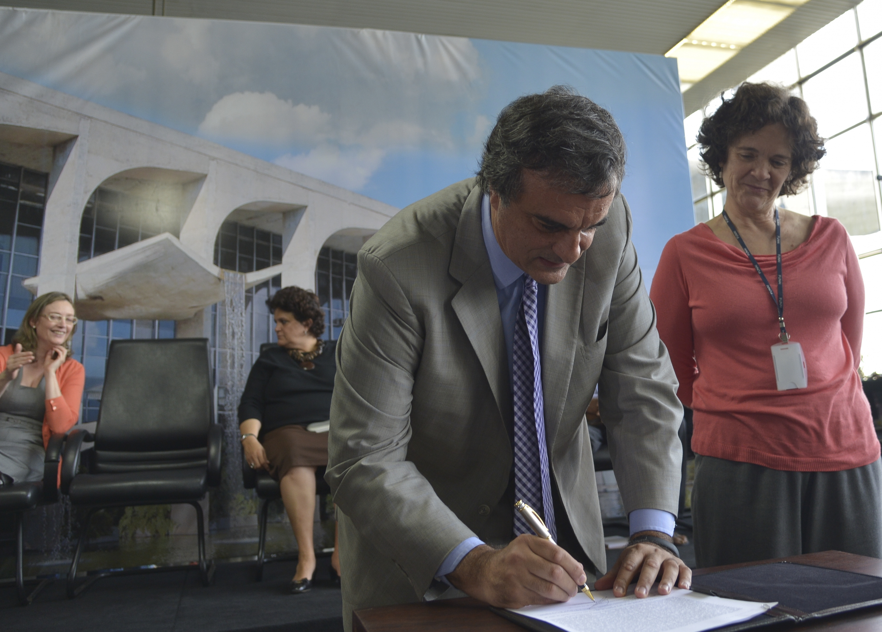O ministro da Justiça, José Eduardo Cardozo, e a presidenta da Fundação Nacional do Ãndio (Funai), Marta Azevedo, participam da cerimônia que cria o Comitê Gestor da PolÃtica Nacional de Gestão Territorial e Ambiental de Terras IndÃgena.
