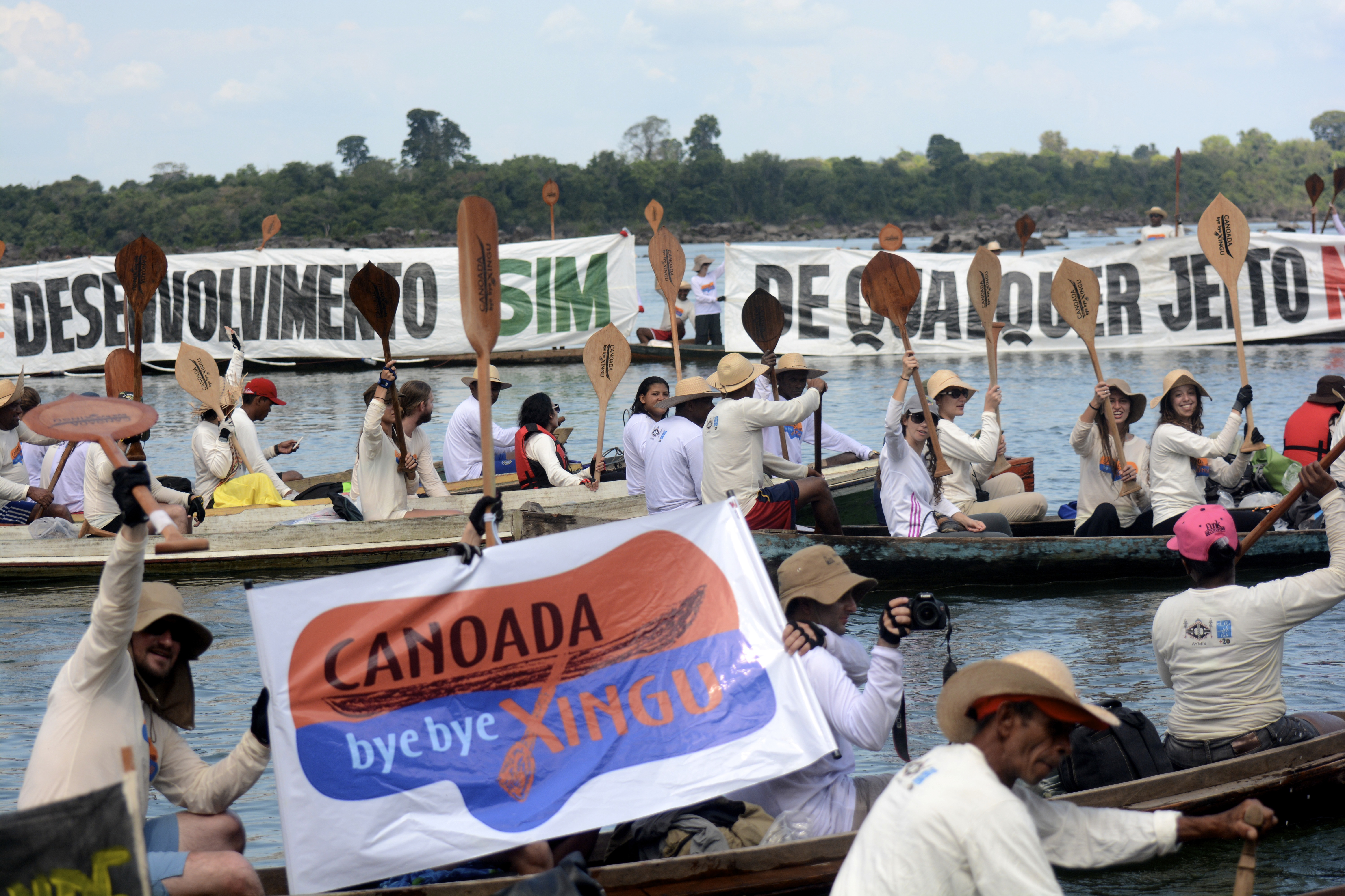 Canoada Bye Bye Xingu abre faixa de protesto em frente à barragem de Belo Monte