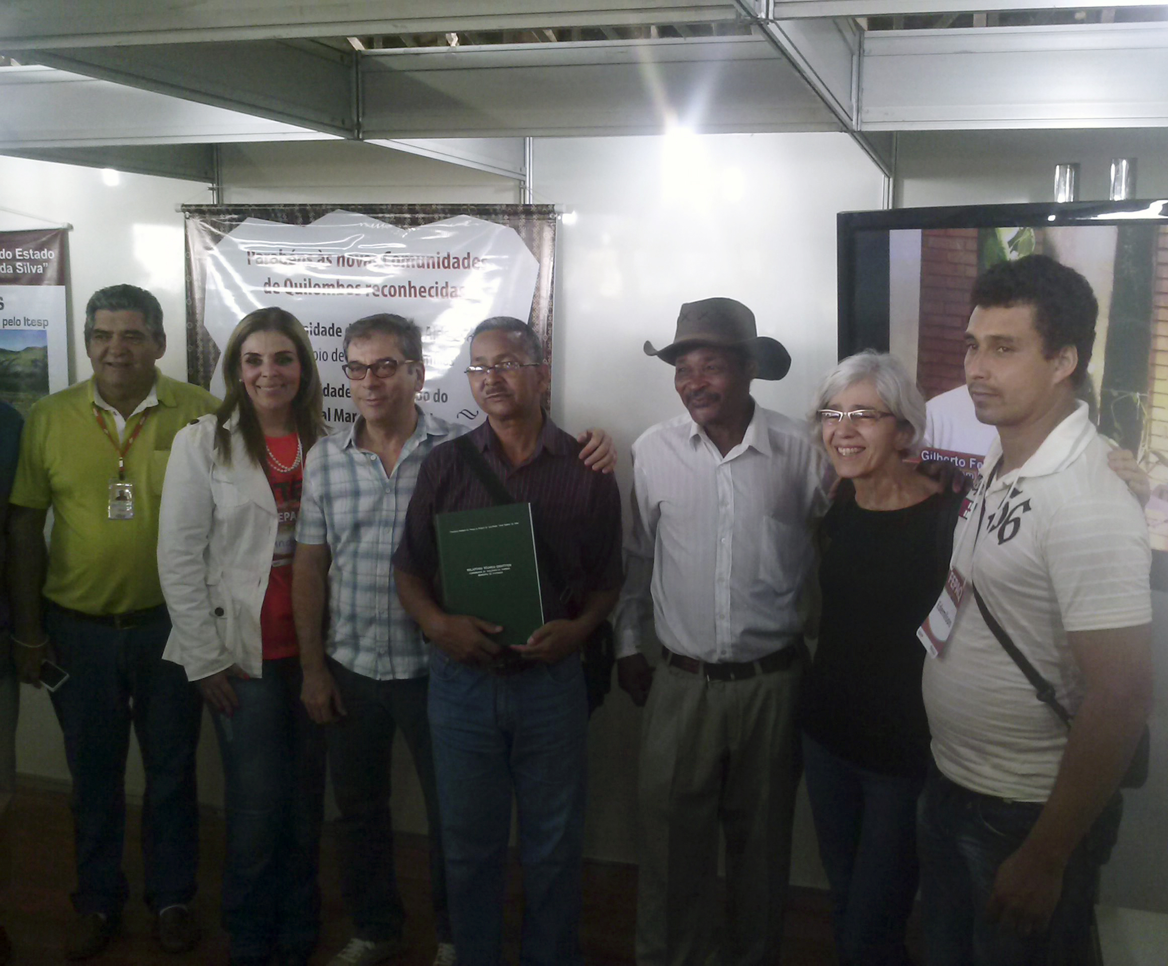 Ãs vésperas do Dia da Consciência Negra, o governo paulista anunciou o reconhecimento das comunidades de Abobral da Margem Esquerda, Engenho, Bombas e Aldeia. Na foto, Pedro Lima, Andreia Aparecida Prestes João, Carlos Henrique (do Itesp), Edmilson Furquim, Antoninho Ursulino (de Bombas), Ignez Mariconi (do Itesp) e João Fortes (de Bombas) comemoram o RTC (Relatório Técnico CientÃfico), Parque da Ãgua Branca.