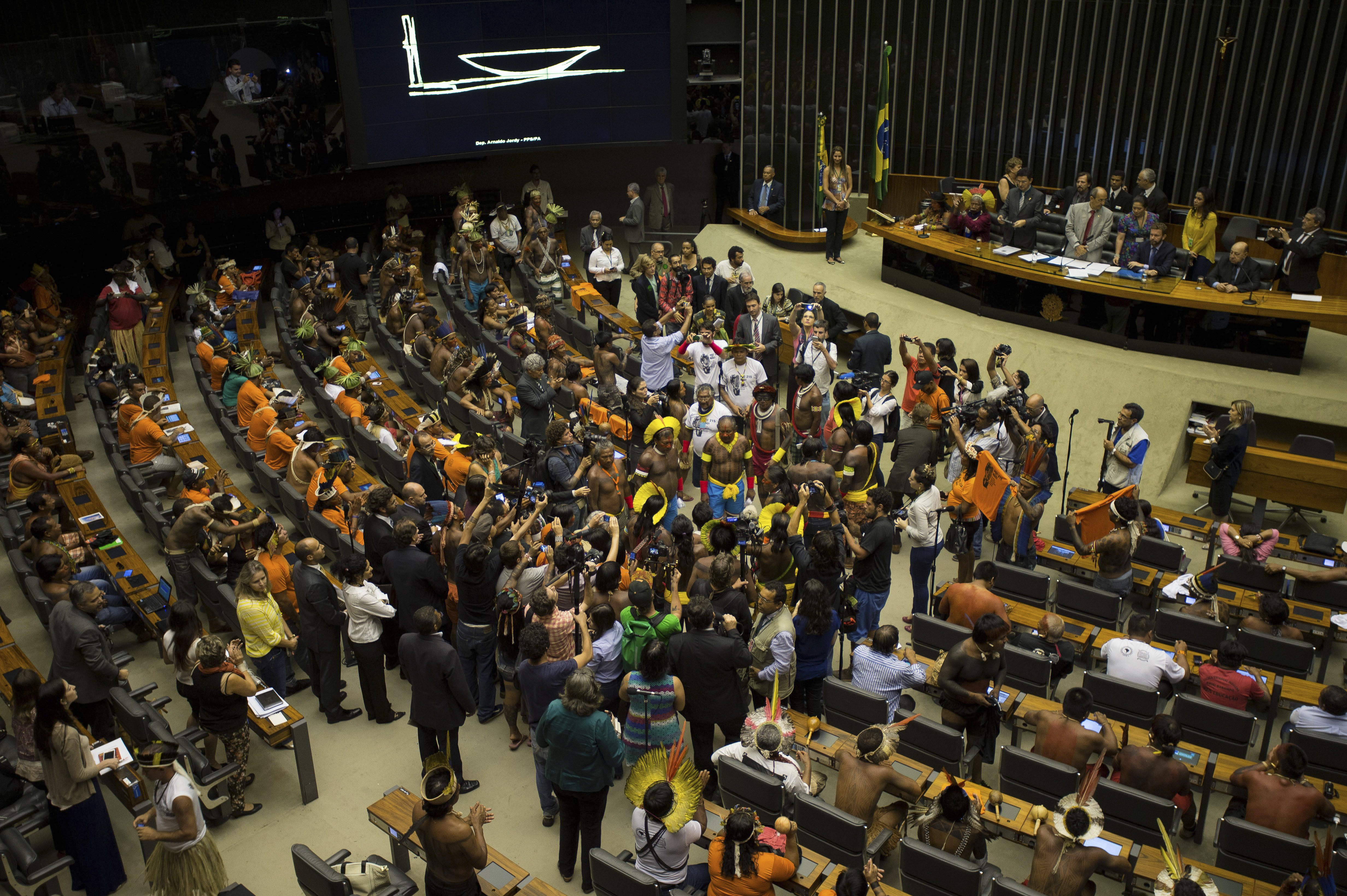 Representantes de tribos indÃgenas participam de Sessão Solene em Homenagem aos Povos IndÃgenas na Câmara dos Deputados.