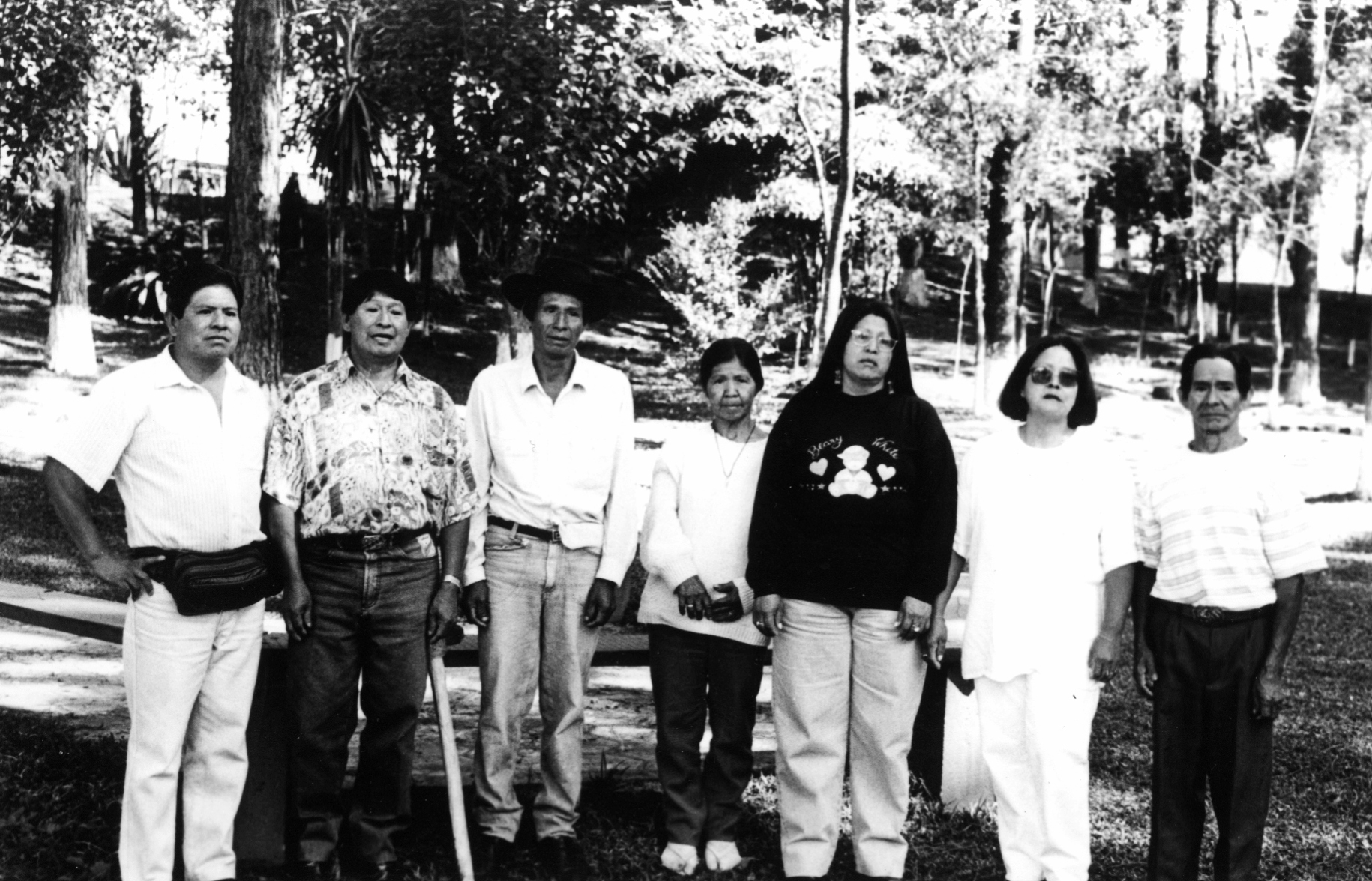 Atendendo a solicitação dos oito remanescentes Xetá, o Instituto Socioambiental promoveu em Curitiba o "Encontro Xetá: Sobreviventes do Extermínio", ocasião em que estes e alguns de seus familiares se conheceram e conversaram sobre si, sobre o presente, sobre o passado e as perspectivas de um futuro melhor para eles e seus descendentes. Na foto, da esq. p/ dir: Tiqüein, Tuca Tikuein, Ã, Tiguá, Tiguá e Kuein, Curitiba, Paraná.